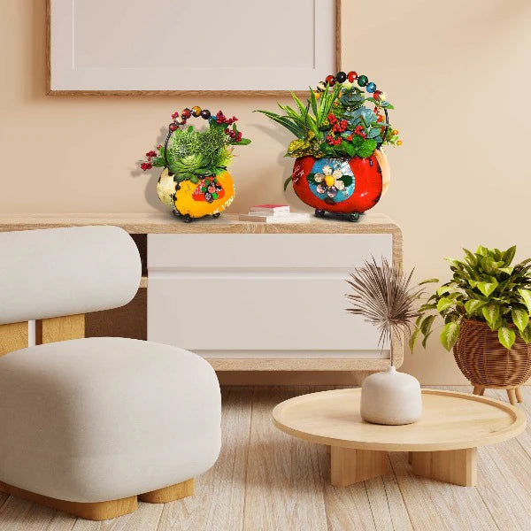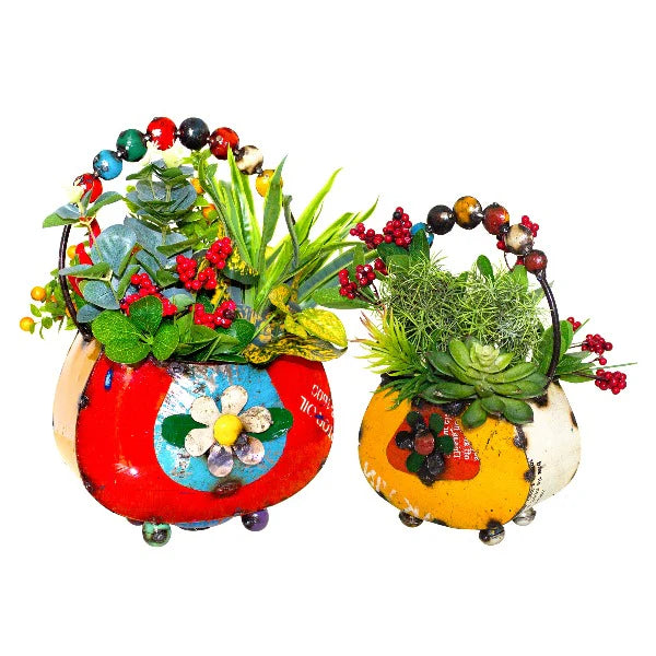 De charmiga väskorna passar perfekt för blommor och växter som förtjänar lite extra uppmärksamhet. Använd dem inne eller ute – de tål väder och vind, och färgerna vädras naturligt om de står utomhus, vilket bara ger ännu mer charm med tiden.